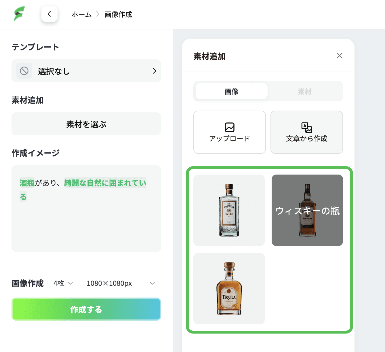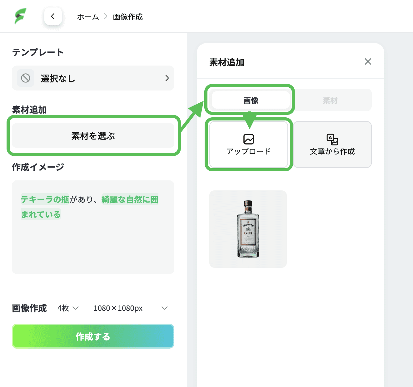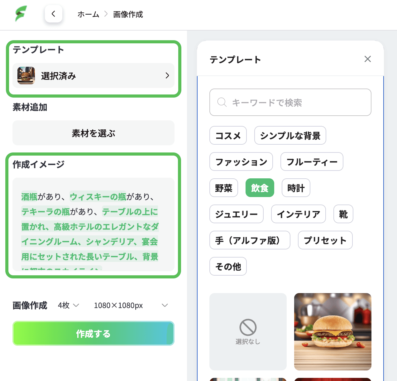 Once you have finished placing the images, fill in the template and the images you want to create about the product images you want to create. Then press the [Generate] button to start generating images.