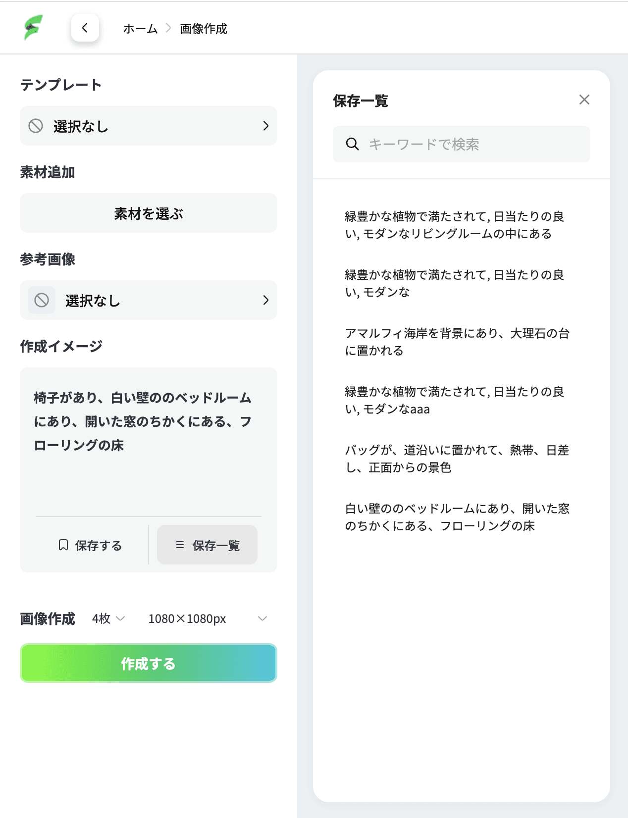 Click on ‘Save list’ next to Save to see a list of the text of the previously saved creation images.