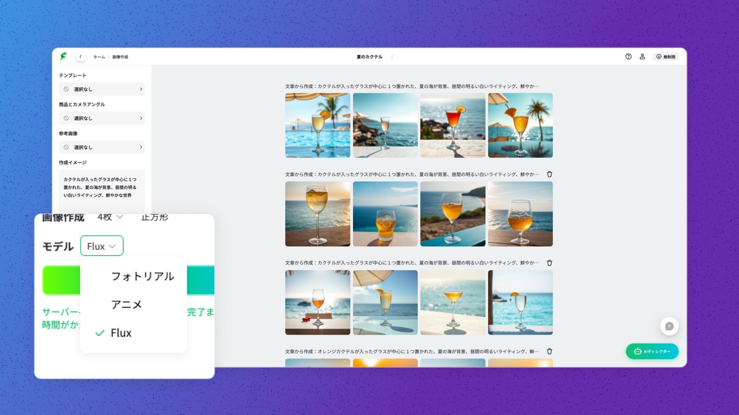 The model selection for "text-to-image" image generation now includes the latest "Flux".