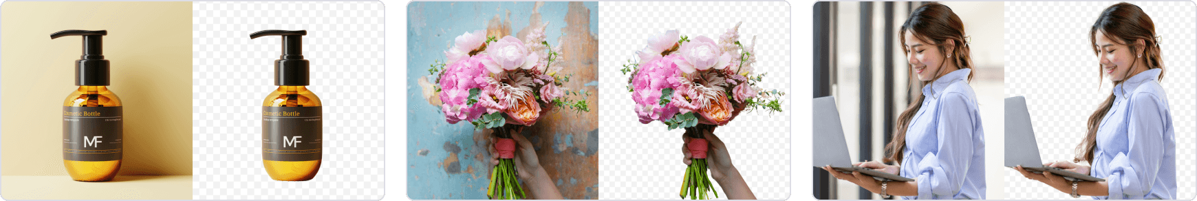 容器はもちろん、花や髪の毛などの複雑な要素・背景もAIが自動で切り抜きます。