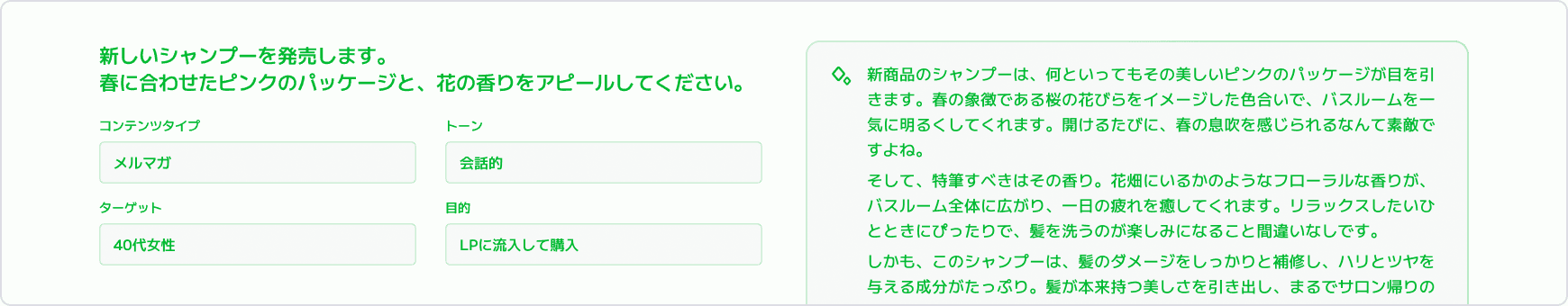 メルマガや商品コピーの作成時間を大幅に短縮。ターゲット属性や戦略を簡単に指定できます!