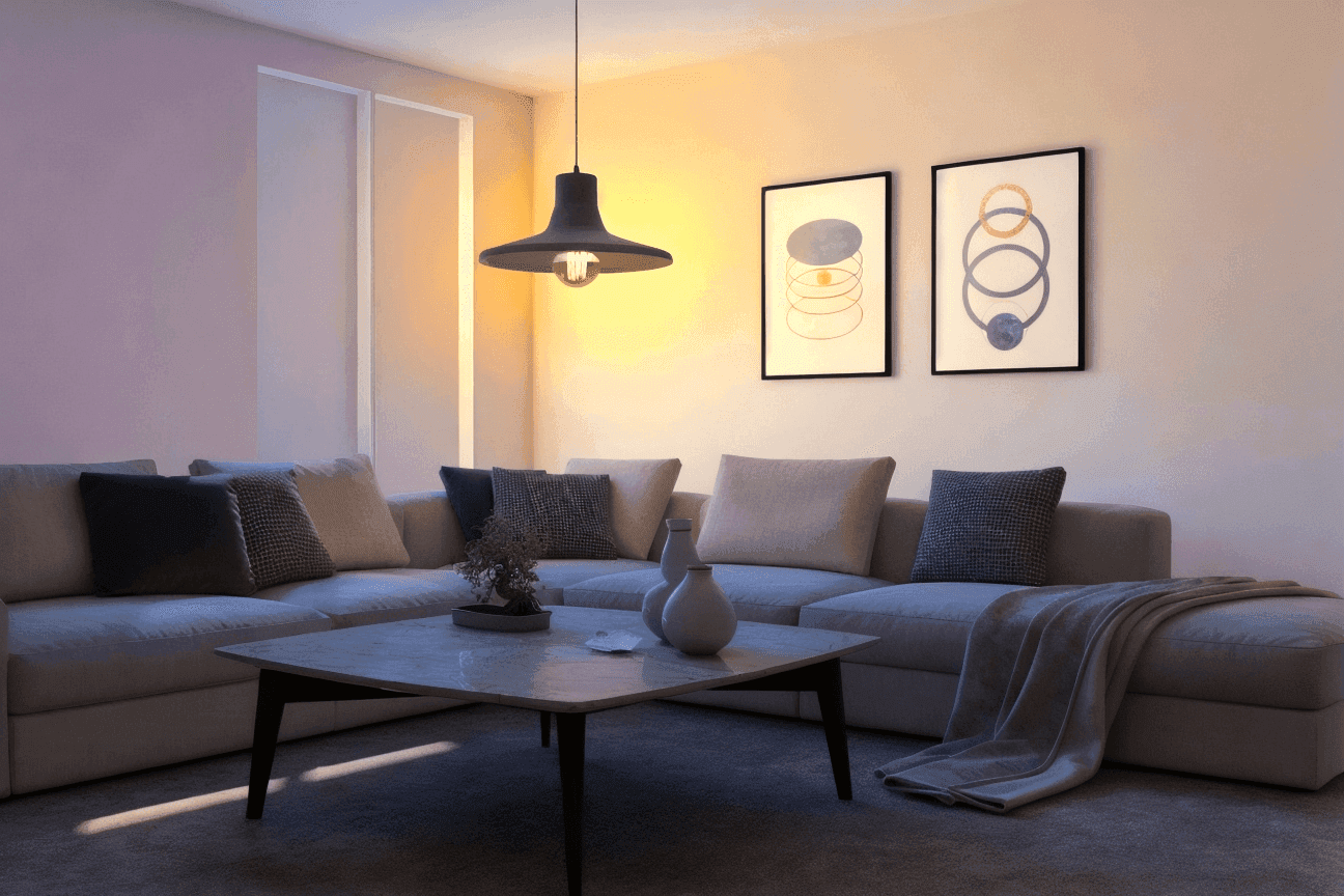 If you have an image of a room during the day, you can instantly create an image of the room with warm bulbs lit at night.