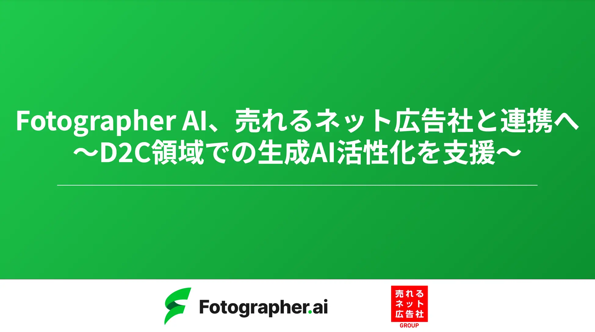 Fotographer AI株式会社(以下「Fotographer AI」)は、株式会社売れるネット広告社(本社:福岡県福岡市、代表取締役社長CEO:加藤公一レオ、東証グロース市場:証券コード9235、以下 売れるネット広告社)と、マーケティングコンテンツ自動生成AIサービス「Fotographer.ai」との連携を開始することをお知らせいたします。